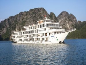 Ha Long Bay (Vietnamese: Vịnh Hạ Long, IPA: [vînˀ hâːˀ lawŋm], Chinese: 下龍灣) is a UNESCO World Heritage Site and popular travel destination in Quang Ninh Province, Vietnam. The name Hạ Long means “descending dragon”. Administratively, the bay belongs to Ha Long City, Cam Pha City, and is a part of Van Don District. The bay features thousands of limestone karsts and isles in various shapes and sizes. Ha Long Bay is a center of a larger zone which includes Bai Tu Long Bay to the northeast, and Cat Ba Island to the southwest. These larger zones share a similar geological, geographical, geomorphological, climate, and cultural characters.
